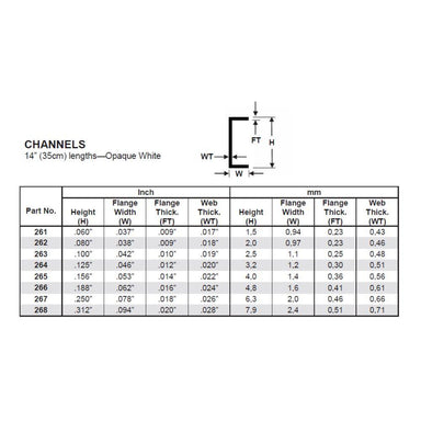 7106 - .015" X .093" OPAQUE WHITE POLYSTYRENE S SCALE STRIPS ( 1 X 6 )787026071060 .015" X .093" X 14" / .4mm X 2.4mm X 35cmDIMENSIONS REPLICATE 1...