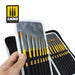 Made of high-quality materials, this case will protect and help you properly care for your brushes. It will also be very useful in your outings to attend workshops and competitions or those who do not have a fixed work site. The case has 17 spaces, each with rubber used to hold each brush securely in place and keep the hairs from being damaged. In addition, this Brush Case includes seventeen brushes from AMMO´s Synthetic Brush range made of high-quality fibres that are safe to use with solvent based products. This versatility allows you to use this full range of brushes to apply any type of paint, including acrylics, enamels or oil colours.