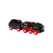 “Full steam ahead!”. Chug around your BRIO World railway with realistic steam effects in the 33884 Battery-Operated Steaming Train. This battery-powered engine produces safe-to-touch steam from its chimney as it speeds down the tracks. Once you’re out of water, you can easily refill the engine using the refill load that’s being pulled behind the train. Press the red forward button on the top of the engine, the front light switches on as the steam starts to rise and you’re off again on more classic railway adventures.