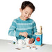 Pretend-play tea parties can now include coffee with this realistic wooden Brew & Serve Coffee Set for two! Lift the lid and pop in one of three coffee pods (regular, hazelnut, or mocha) and turn the knob to choose the serving size! Too hot for coffee? Add the included ice cube to make it "iced." The 11-piece set comes with two wooden mugs, creamer, sugar, a spoon, and even a re-usable order card for budding baristas! Quality construction means endless hours of imaginative play!