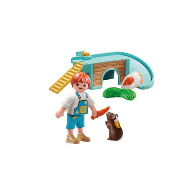 Meet the caring boy who looks after his two playful guinea pigs. At the PLAYMOBIL Guinea Pig House, each furry friend scurries across a staircase, ...