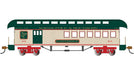In the late 1800s, railroads were spreading fast across North America. Trips that took days by stagecoach could now be completed in a few hours - and with far more relative comfort. Coach Cars were designed exclusively for passengers, while Baggage Cars were configured for transporting goods and mail. Other cars known as "Combines" were built to transport both passengers and cargo. In the early 20th century, steel "Heavyweight" cars became the standard, and most wood-sided cars were withdrawn by 1920. However, examples of these early passenger cars can still be found operating on excursion railroads across North America, inspiring tourists with the romance of travel in the Old West. This model represents cars commonly seen on the Pennsylvania Railroad between 1860 and 1900.