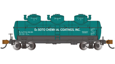 3-Dome Tank Car - Desoto Chemical Coatings #3448 Model: 17161 UPC: 022899171616 Shipping Weight: 0.3 lbs Scale: N 1:160 Features Include Detailed, ...
