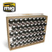 Shelves optimized to store 45 cans of 35 mL in the smallest possible space.The bottles are stored at an angle minimizing its size and allows us to find our colors at a glance. Size 40 x 30 x 6.5 cm. It can be placed on a table or hung on the wall. Easy to assemble in minutes. Requires white glue not included.