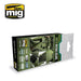 A set specially designed for Mechas and other sci-fi subjects. This set contains six colors for some of the most popular Mechas, for example Zakus. Exclusive set includes 4 different shades of green, perfect to add interest and different color tones to each plate, a blue and an acrylic gun metal. Accurate colors formulated with this modeling genre in mind. Water soluble, odorless and non-toxic. Shake well before each use. Each jar includes a stainless steel agitator to facilitate mixture. We recommend A.MIG-2000 Acrylic Thinner for a correct thinning. Dries completely in 24 hours.