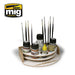The most convenient way to organize the paints and brushes with which we are working at the time. This small organizer allows us to put 5 jars with which we are going without the risk of rolling over, either 17 or 35 mL interchangeably. It also allows you to place a plastic cup or bottle of 100 mL and 10 brushes. Its small size makes it perfect to help paint anywhere no matter how small the space available is. A perfect solution also for travel or modeling meetings.