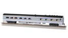 In the 1930s, new construction techniques allowed for the development of modern, lightweight passenger cars, departing from the heavy riveted steel or wooden-bodied designs found in previous decades. Materials such as stainless steel and aluminum reduced the overall weight of each car, making them more economical to construct and operate while allowing for ease of maintenance, a smoother ride, and improved durability over time. The smooth-side style was adopted by many railroads across North America for their high-priority streamlined express trains, lasting in common service until the mid-1970s. Today, smooth-side cars are frequently found on excursion trains, while some examples remain in revenue operation as commuter cars or corporate business cars. With the Bachmann 85’ Smooth-Side Dining Car, you can recreate the golden age of rail travel when friendships between passengers formed across tables, and chef-cooked meals were served on fine china - all while the ever-changing American landscape passed outside the window.