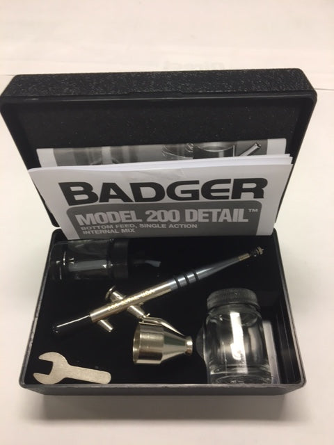 The model 200-20 has a single size paint tip, spray regulator and needle that work with any properly reduced medium. Including acrylics, gouache, inks and dyes, enamels, lacquers, stains ect.