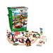 33655 Railway World Deluxe Set includes 106 pieces: 1x Airport, 1x Large Station, 1x Small Station, 1x Lighthouse, 1x Farm Barn, 17x Vehicles, 52x Rail & Road Wooden Track Pieces, Batteries & Instructions, And more.