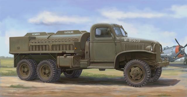 The GMC CCKW is a 2.5 ton 6X6 U.S. Army cargo truck that saw service in World War II and the Korean War, often referred to as a "Deuce and a Half" or "Jimmy". The CCKW came in many variants, based on the open or closed cab, and Long Wheel Base (LWB 353) or Short Wheel Base (SWB 352).Initially all versions were of closed cab design (having a metal roof and doors) with all steel cargo beds. But as the war progressed an open cab version was designed that had fixed 'half doors' and a canvas top/sides and the steel bed was replaced by a wooden one to conserve steel. The wood bed proved unsatisfactory and a 'composite' bed with steel sides and framing, but with wooden slats for the bed, was developed. Later on the 'wood/steel' composite bed was replaced by an all steel composite bed.