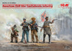 The set includes 41 parts for assembly of 4 figures of American Civil War Confederate infantrymen, and 80 parts for assembly of weapons & equipment.