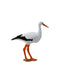 Characteristics: This tall and stately stork figure features the bird's distinctive long bill, long legs and tall stature. Its bill and legs are orange-red, and its feathered body is white and black.