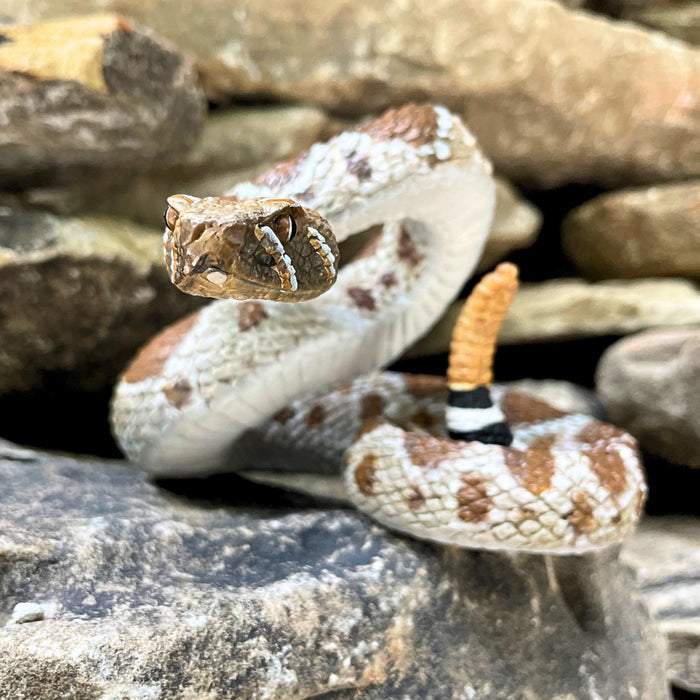 Characteristics: This Western Diamondback Rattlesnake toy figure is sculpted in its warning pose, ready to defend itself with its rattle raised and ready. It features accurate sculpting and detailed diamond-patterned markings. But don't worry - despite its realism, this snake won't harm you!
