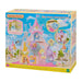 Contents include: Chocolate Rabbit baby, Main unit, Base (large), Base (small), Castle, Flag (large), Flag (small) x2, Gondola (purple), Gondola (blue), Gondola (yellow), Viking ship, Wave, Carriage, and Steam train.