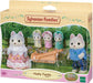 The figures have beautiful grey and brown fur. The adorable triplets are wearing matching hooded outfits. The triplets can ride in the sleigh. And the mother and father can hold the sleigh handle.