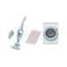 Laundry & Vacuum Cleaner features a dial on the washing machine that can be turned to spin the drum. Turning the drum gives the impression of water flowing inside the machine. The hand-held vacuum can be removed from the main unit. The vacuum cleaner can be used as a standalone unit.