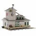The H&H Feed Mill is authentically weathered and hand-painted down to the finest details. These details include a positionable grain chute, a cyclone above the dumping area, a large back dock, with a smaller side dock, and other outdoor accessories on the front walk. The H&H Feed Mill also contains Just Plug Lighting and a printed interior. Two interior lights and one exterior light over the dumping area.