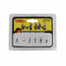 A full-figures officer is eating a doughnut, while another is writing a ticket. With gun in hand, an officer is ready to draw. One is directing traffic and another is walking his beat, smacking a nightstick into his open hand.